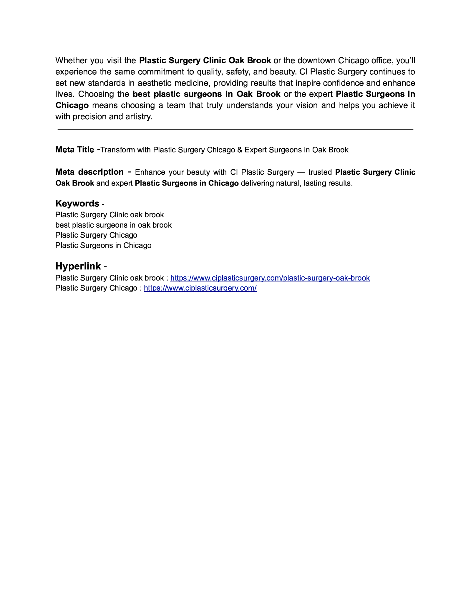 Transform with Plastic Surgery Chicago & Expert Surgeons in Oak Brook