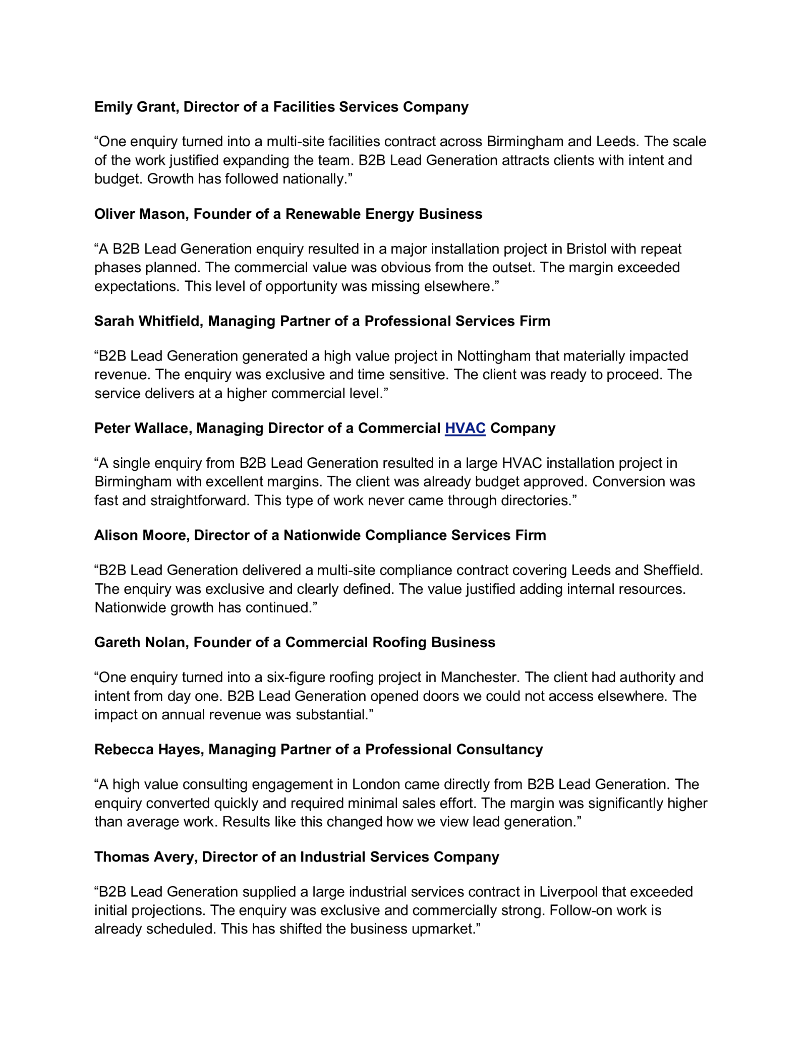 B2B Lead Generation Testimonials
