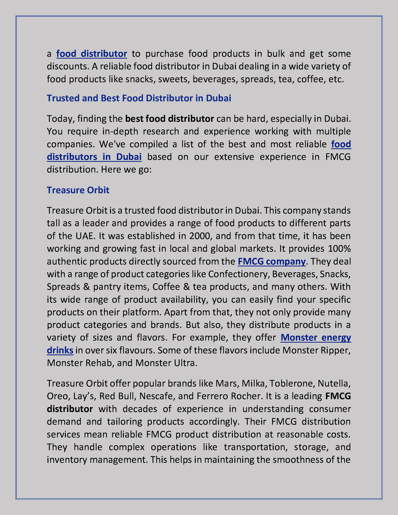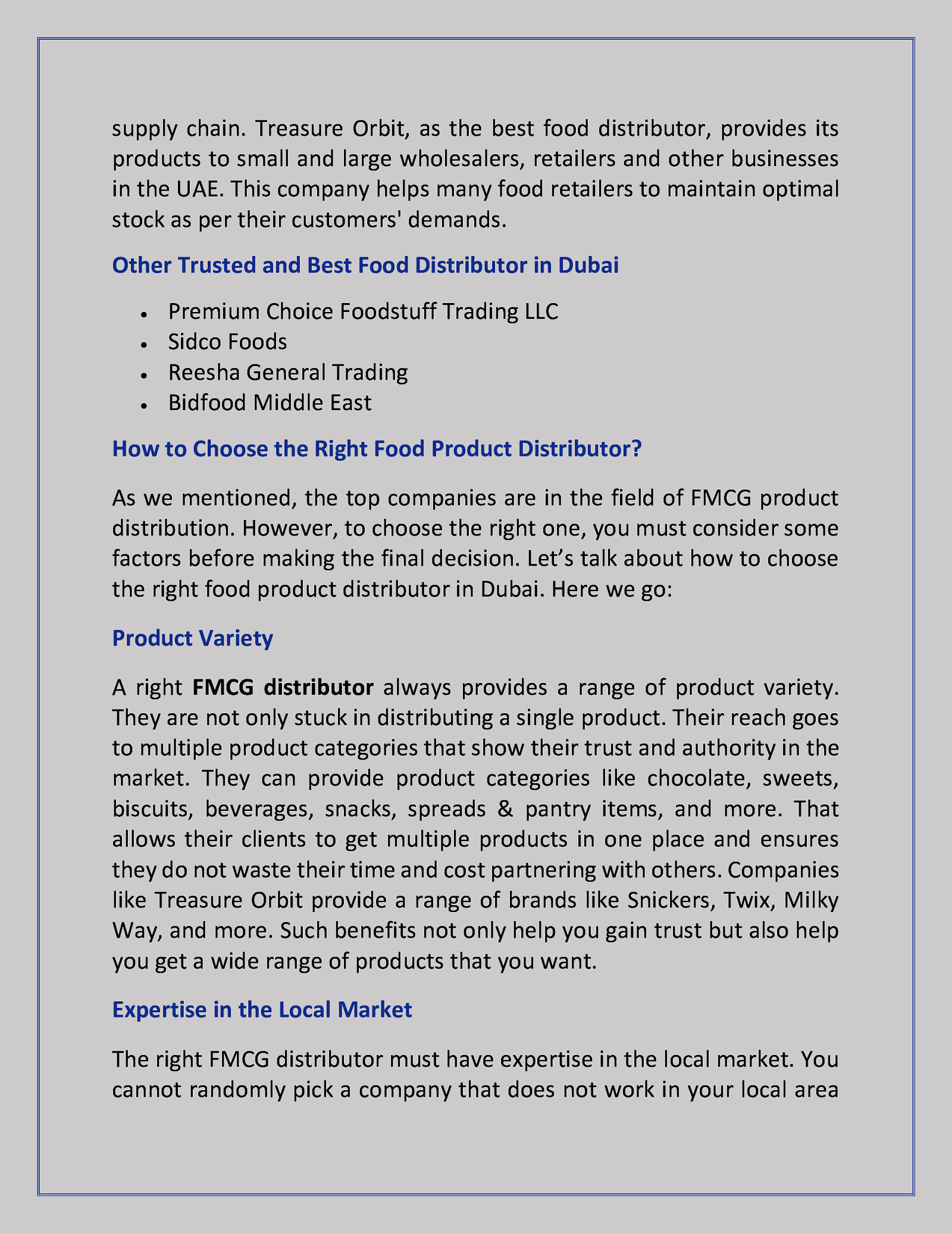 Trusted and Best Food Distributor in Dubai